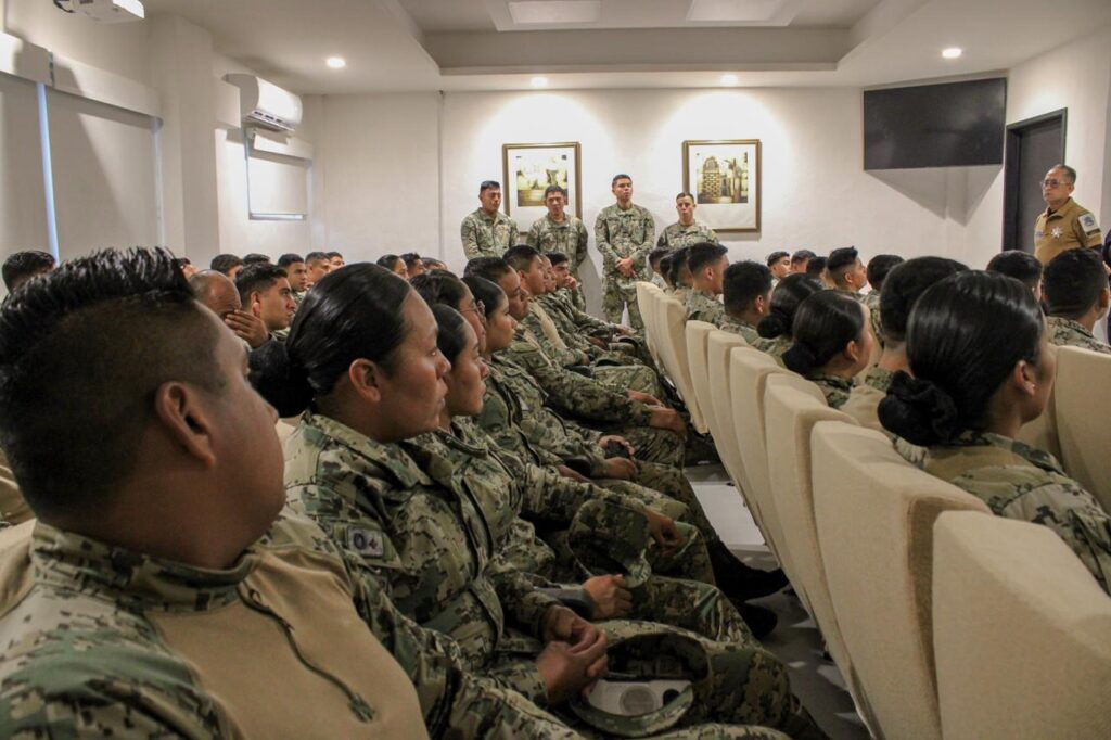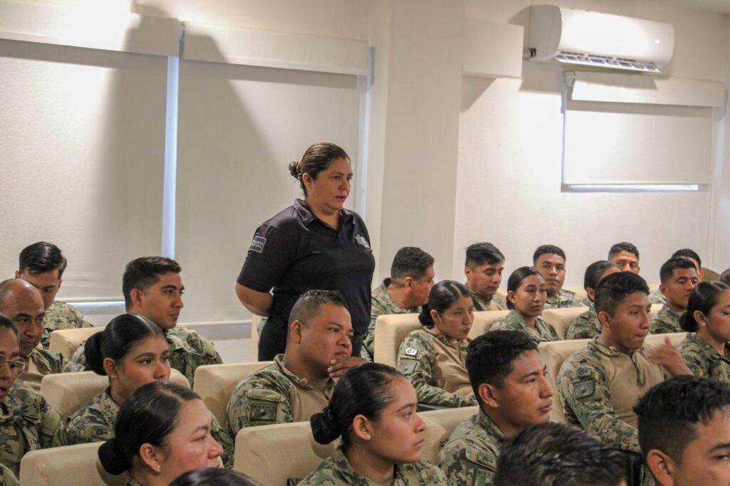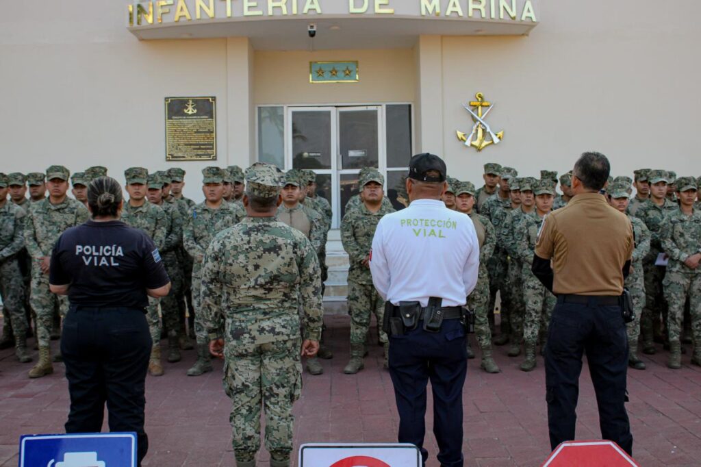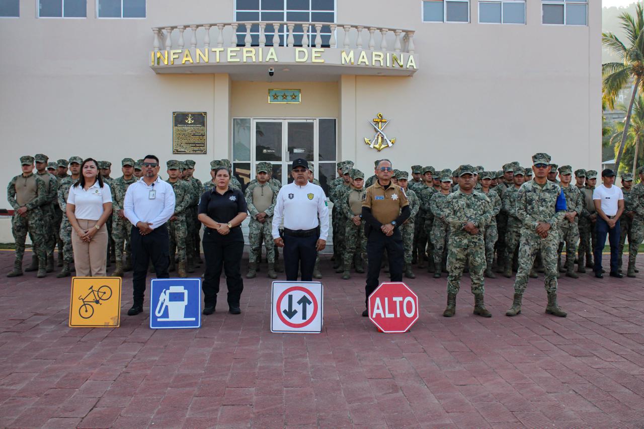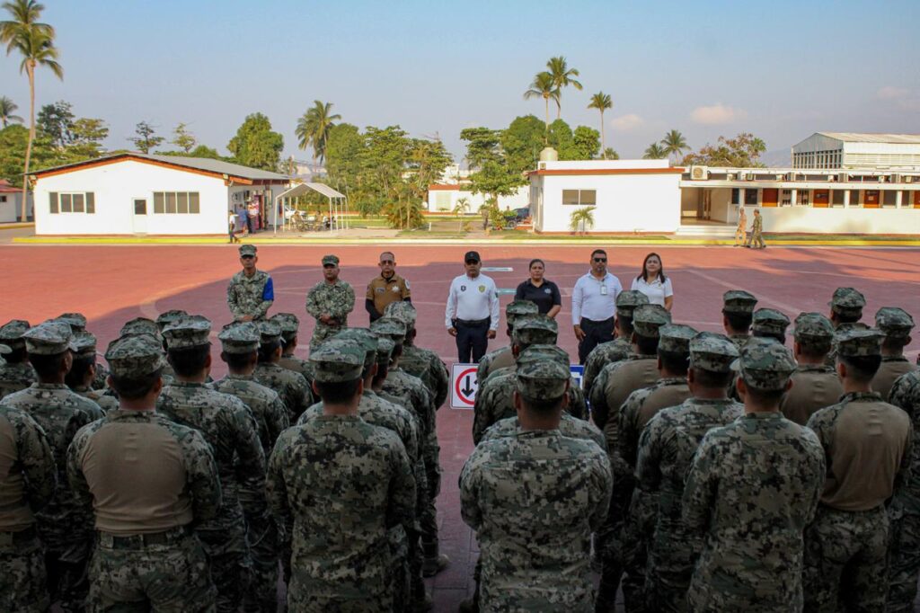 Acapulco, Gro., 04 de marzo de 2026.- La Secretaría de Seguridad Pública Municipal (SSP) ofreció un taller de cultura vial en la colonia Icacos, dentro de las instalaciones de la Octava Región Naval, dirigido a elementos de la Secretaría de Marina, con la finalidad de fortalecer la responsabilidad al conducir y fomentar hábitos que previenen accidentes entre quienes integran las instituciones.