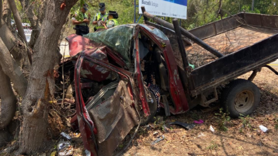 De acuerdo con los primeros reportes, el vehículo se impactó contra un árbol, lo que dejó al conductor atrapado dentro de la cabina.